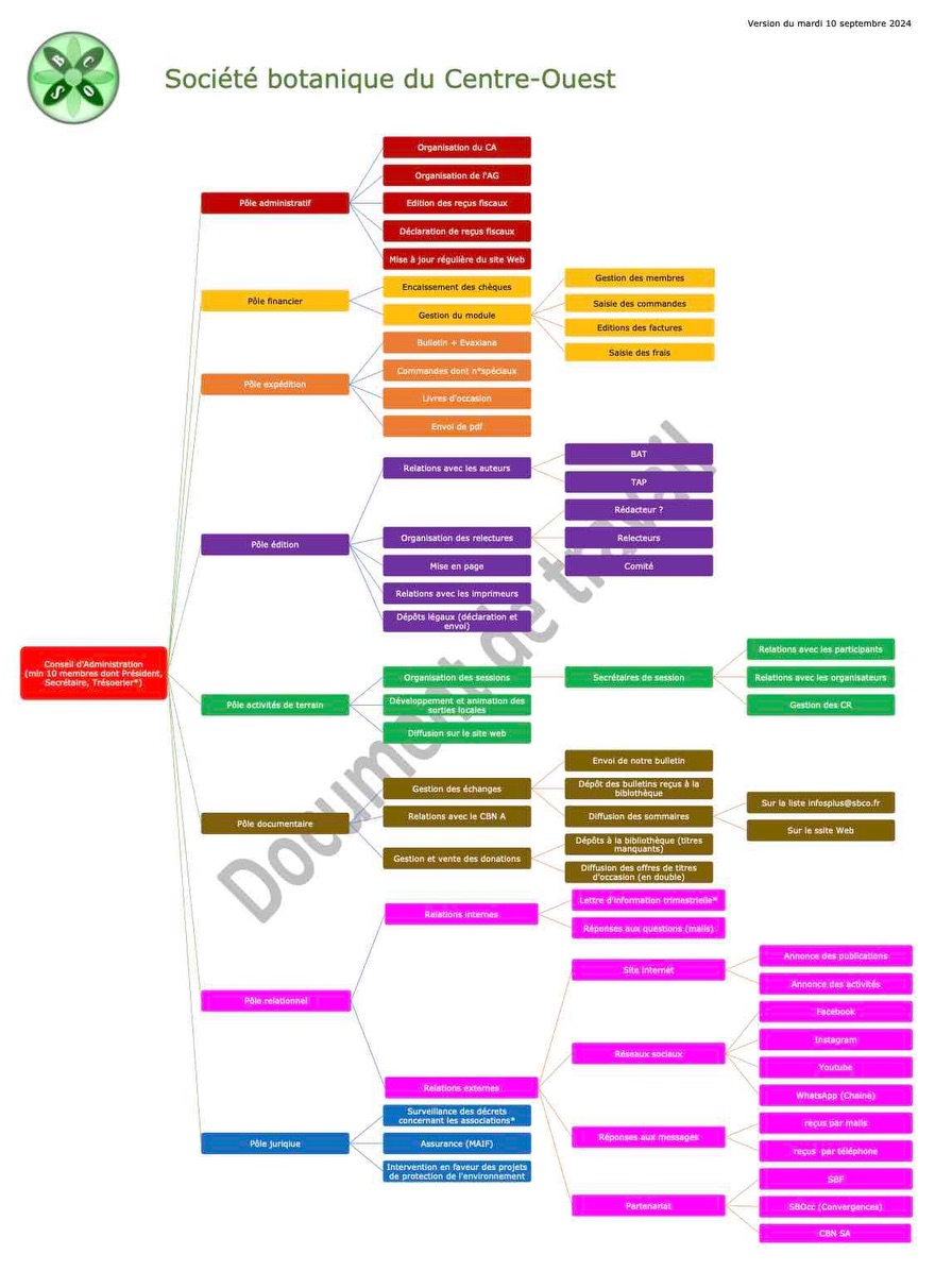 | | Organigramme du fonctionnement de la SBCOLes tâches à réaliser ne manquent pas à la SBCO comme vous pouvez le voir dans l’organigramme ci-contre. Nous avons besoin de membres associés pour dynamiser la Société. Si vous voulez vous impliquer vous trouverez des tâches parfois très simples pour lesquelles vous pouvez postuler sans nécessairement vous engager dans le Conseil d’Administration, même si l’un n’empêche pas l’autre car nous avons besoin d’une équipe dynamique pour faire fonctionner la SBCO. Voir l’organigramme... BB | |
